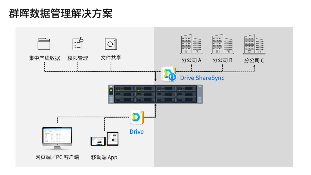 而通過Drive ShareSync多分點(diǎn)同步,打破數(shù)據(jù)孤島現(xiàn)狀,支持在群暉NAS間進(jìn)行數(shù)據(jù)實(shí)時(shí)同步。一旦一端服務(wù)器有數(shù)據(jù)更新,可以快速的同步到每個分支機(jī)構(gòu)。