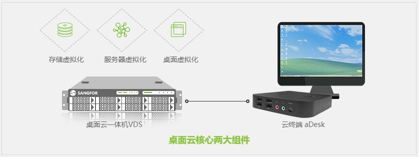 深信服桌面云方案只需aDesk云終端、VDS桌面云一體機(jī)兩種硬件,即可快速搭建VDI平臺(tái)。一站式的桌面云方案可有效提升部署效率,簡(jiǎn)化桌面運(yùn)維工作量,同時(shí)還可保障信息安全,并實(shí)現(xiàn)流暢的移動(dòng)辦公。