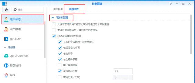 如果想增加密碼強度或是給賬號當前密碼設(shè)定期限可以如下圖設(shè)置