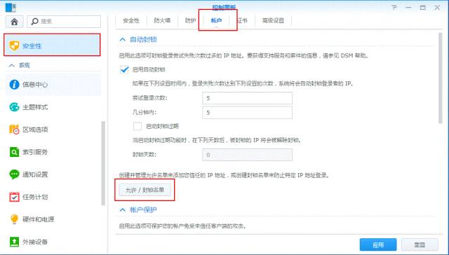 現(xiàn)在很多社交軟件包括郵箱都會記錄用戶常用登錄設(shè)備及常用IP,以便在出現(xiàn)異常登錄時及時提醒用戶。而在NAS里也可以把在指定時間內(nèi)登錄失敗多次的IP帳戶自動加入黑名單。