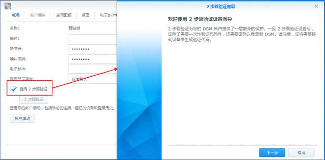 2步驗證就是在登錄時除了輸入賬戶密碼,還要額外輸入一次性的驗證代碼,所以就算有人竊取了用戶的密碼,沒有這個一次性驗證代碼依然無法登錄NAS。