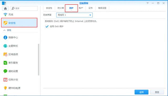 啟用這個功能可以防御來自互聯(lián)網(wǎng)的 DoS 攻擊,維持服務器正常流量的順暢,避免因不明攻擊造成服務癱瘓。設(shè)置如下圖